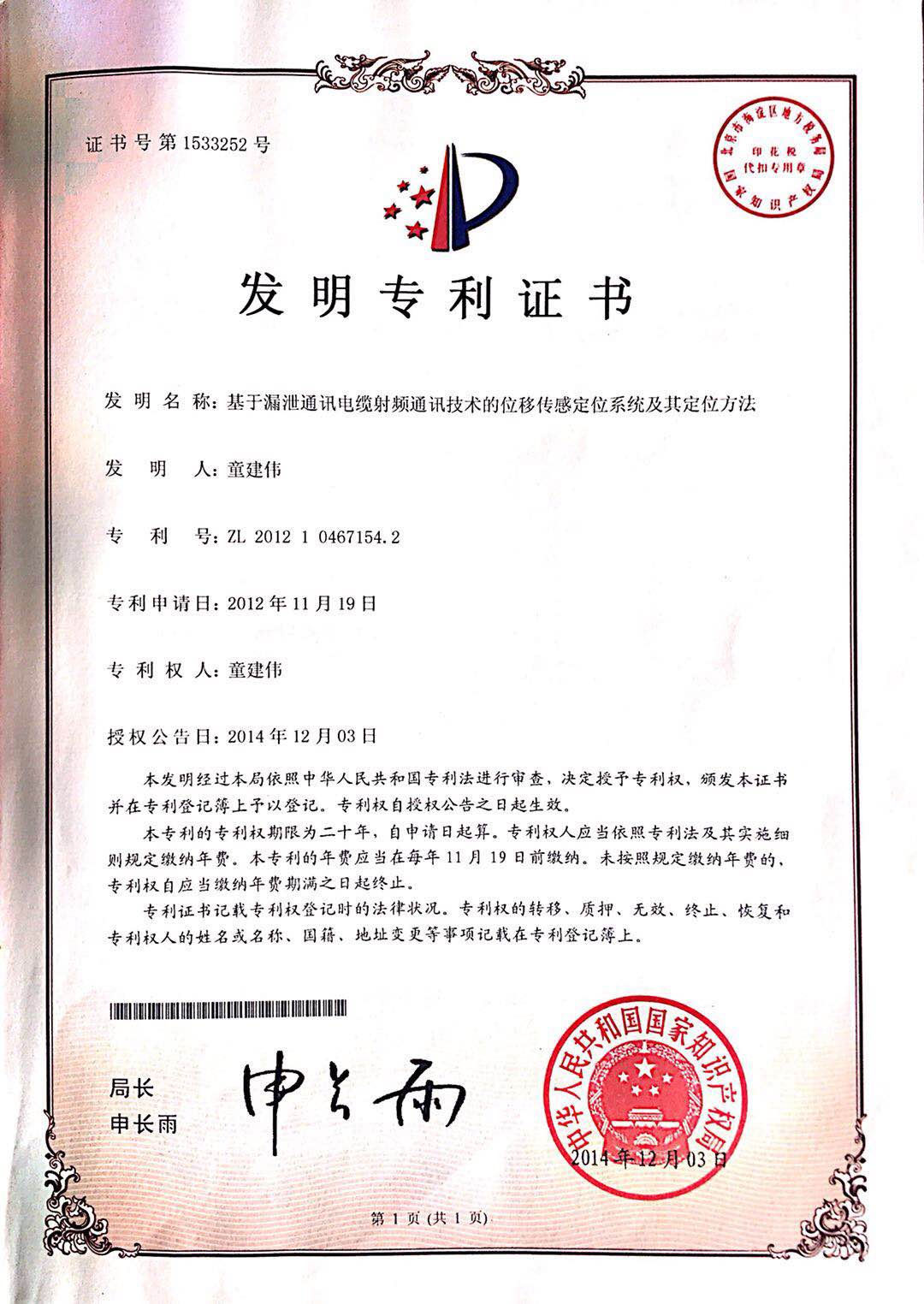 • 基于漏泄通訊電纜射頻通訊技術的位移傳感定位系統及其定位方法